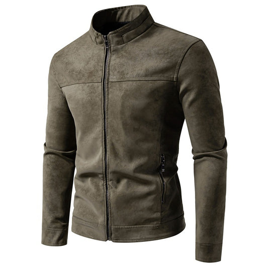 Leather Coat Men's Vintage Washed Faded Edge Stand Collar