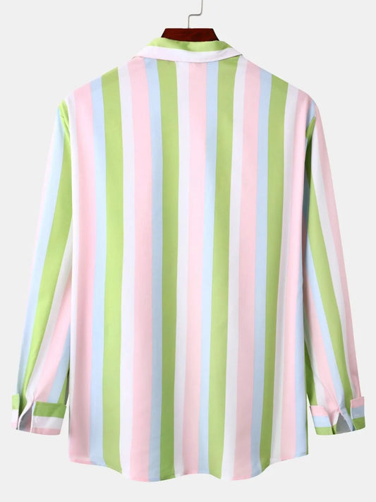 Men's Striped Button Up Long Sleeve Shirt M-3XL