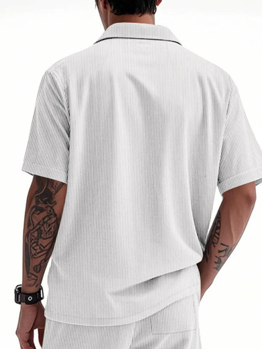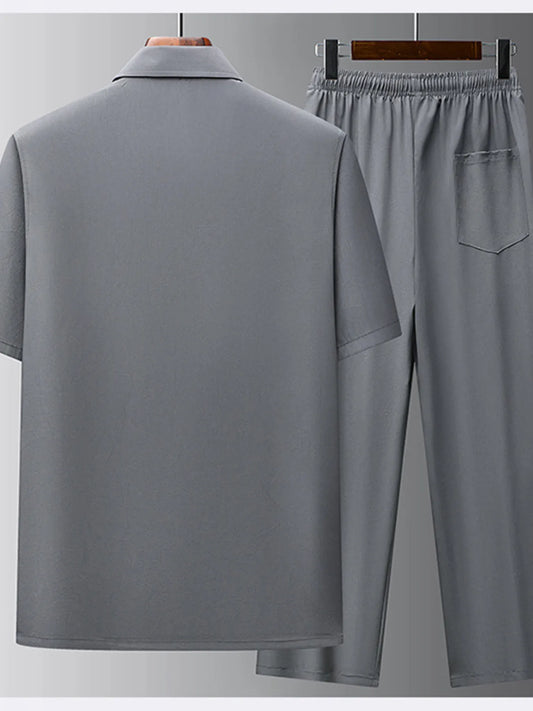 Men's Matching Button Up Short Sleeve Short and Pants Set