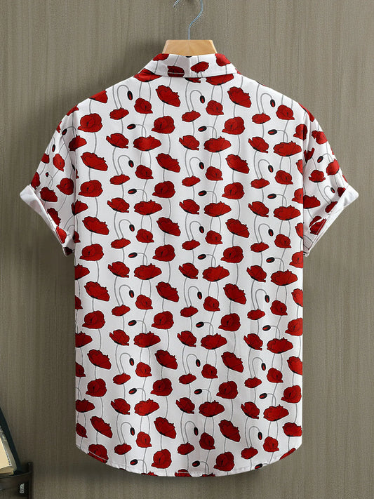 Men's Floral Print Short Sleeve Button Down Shirt M-3XL